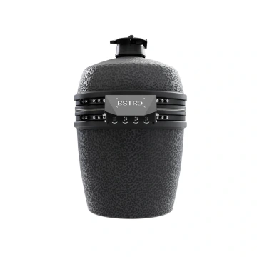 Nový model BSTRD PRO v matné grafitové barvě. Keramický plášť a keramické topeniště pro dlouhé grilování, nerezový vyjímatelný popelník a koš na uhlí, litinový otočný delfektor, litinový ovladač komína a dvojitá dvířka. Unikátní pletené těsnění. Soustava půlených nerezových roštů o průměru 49 cm. Provedení "solo" pro zabudování do stolu nebo kuchyně Cena: 50 990 Kč